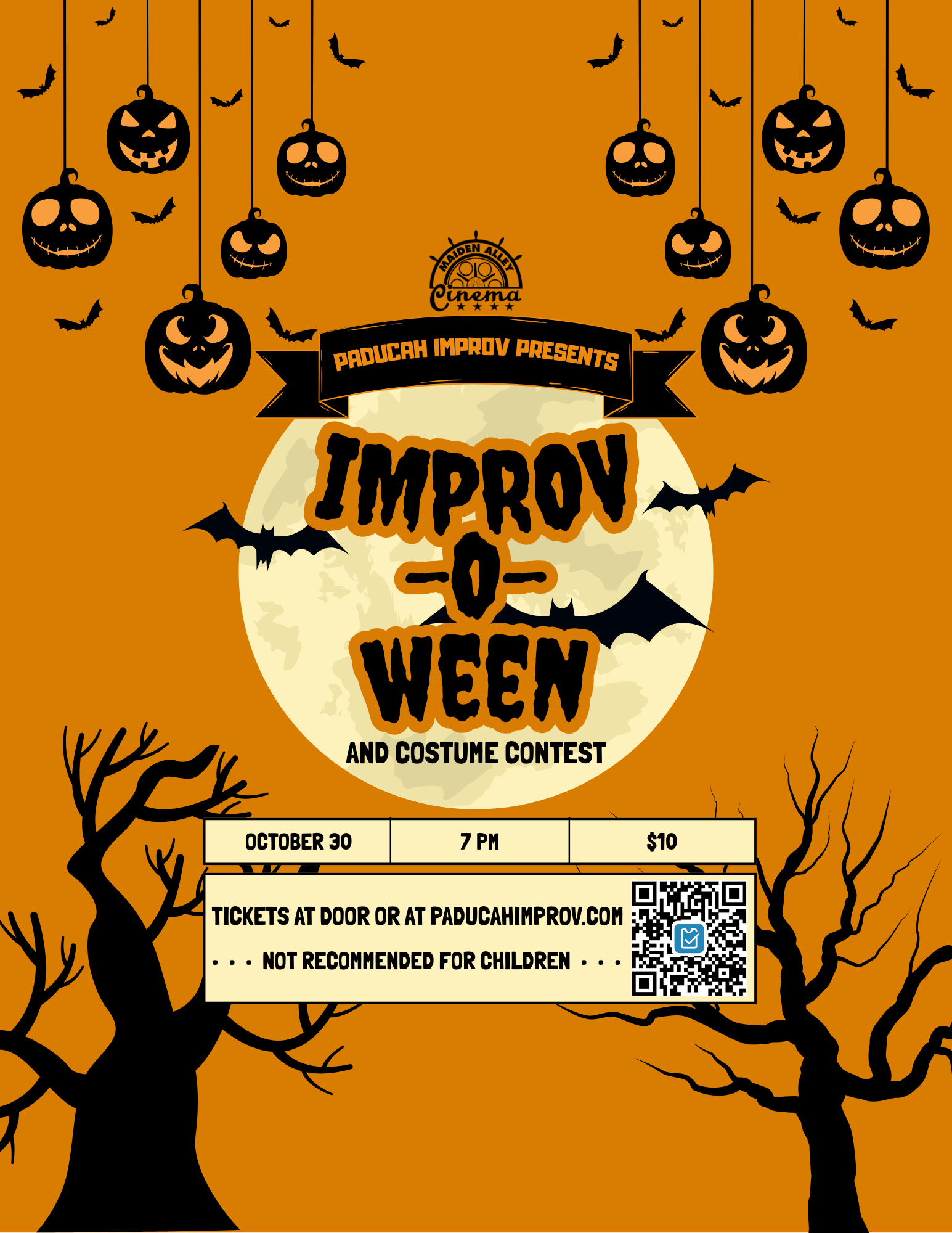 Calling all ghouls, ghosts, and goblins! Paducah Improv is having their annual halloween show and costume contest! We'll be delivering our signature off-the-cuff humor based on YOUR suggestions, as well as a costume contest. The winner gets 2 free tickets for a year. So get those costumes ready and come out for a night of spontaneously spooky laughter!